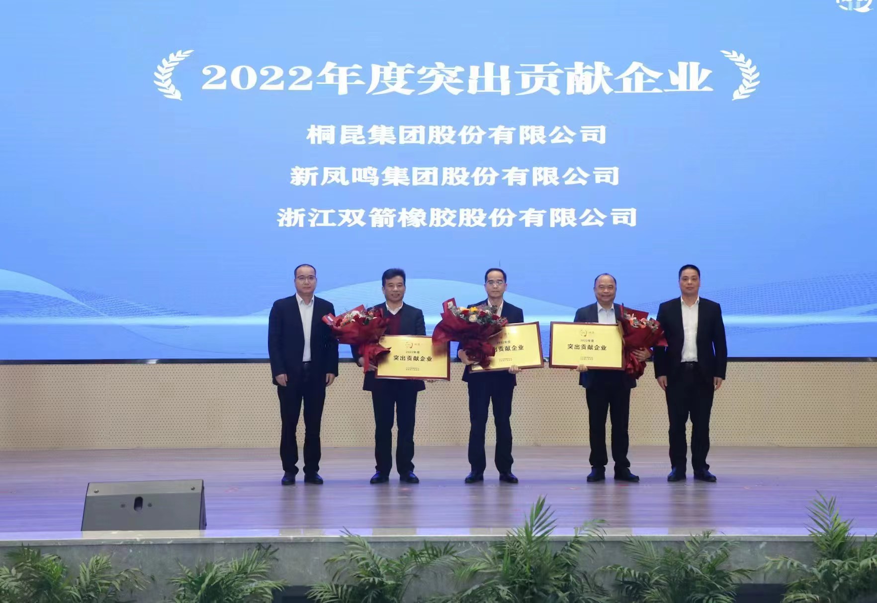 洲泉鎮2022年度經濟工作,雙箭股份榮獲《2022年度突出貢獻企業》、《2022年度科技人才先進企業》,副董事長沈凱菲榮獲《2022年度優秀青年企業家》,授于雙箭股份《親清新型政商關系監測點》。